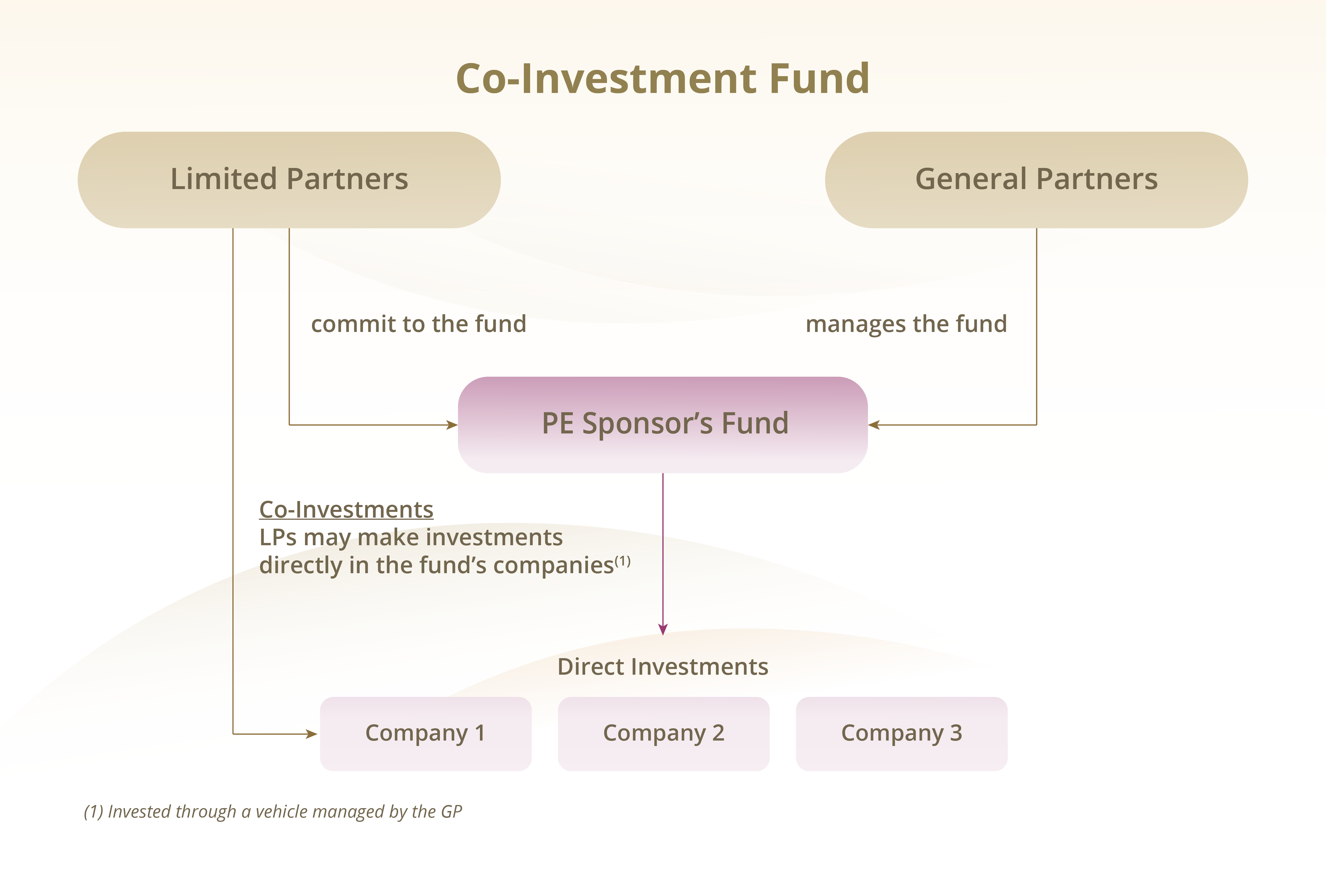 In a co-investment fund, investors are provided direct equity exposure at the portfolio company level typically with no fees and carry charged by the underlying GPs.